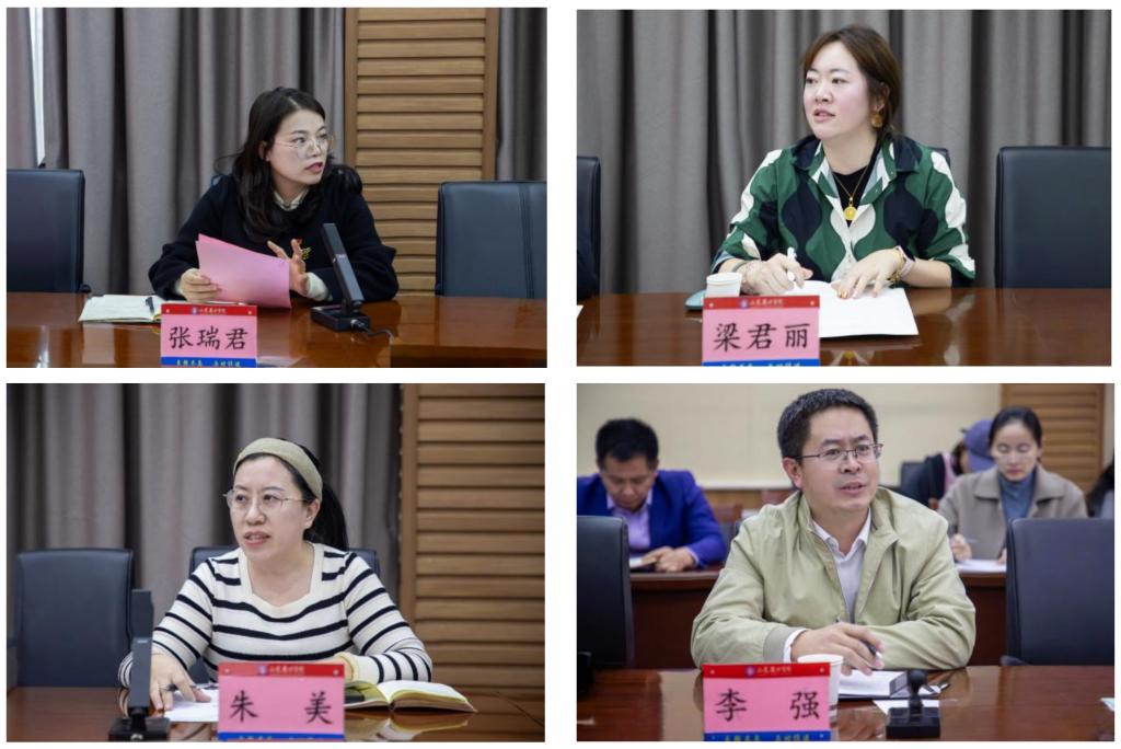 学校领导、学生工作处、教务处、科研处、通识教育学院结合工作实际,提出与创新创业工作融合建议。校长助理张瑞君表示要搭建起常态化的师生双向互动机制,主动公开导师库,设立学生“竞赛之星”等有效举措,营造浓厚的双创氛围;教务处重点推进青年教师培养,打造专创融合特色课程;科研处着力推动师生科研成果向双创项目转化;通识教育学院强化创新创业师资专项培育,列出优秀项目清单,备战2026年双创大赛。