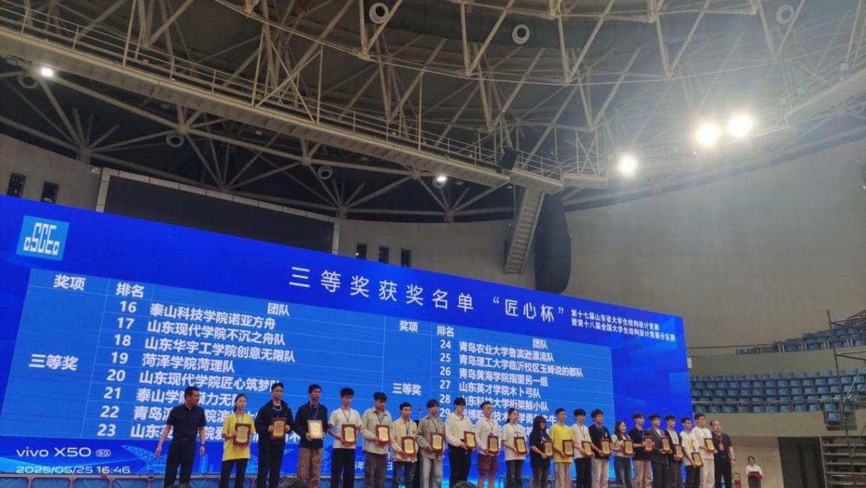 2025年5月23日至25日,第十七届山东省大学生结构设计竞赛暨第十八届全国大学生结构设计竞赛分区赛在青岛圆满落幕。我校两支队伍与全省高校学子同台竞技,展现出卓越的创新能力与实践功底。