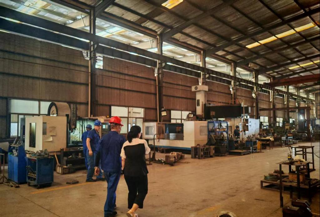 济宁市鼎琛机械公司管理层对我院教师的到访表示了诚挚欢迎。在公司生产部负责人的陪同下,两位教师深入一线,先后参观了结构件焊接车间、机加工车间及总装生产线等等。企业方详细介绍了其先进的等离子切割机、龙门加工中心、焊接机器人工作站等核心生产设备,以及三坐标测量仪、超声波检测仪、漆膜厚度检测仪等高精度检测设备,全方位展示了从原材料下料到精密加工、从高质量焊接至最终成品检测的完整、严谨、高效的现代化制造工艺流程。
