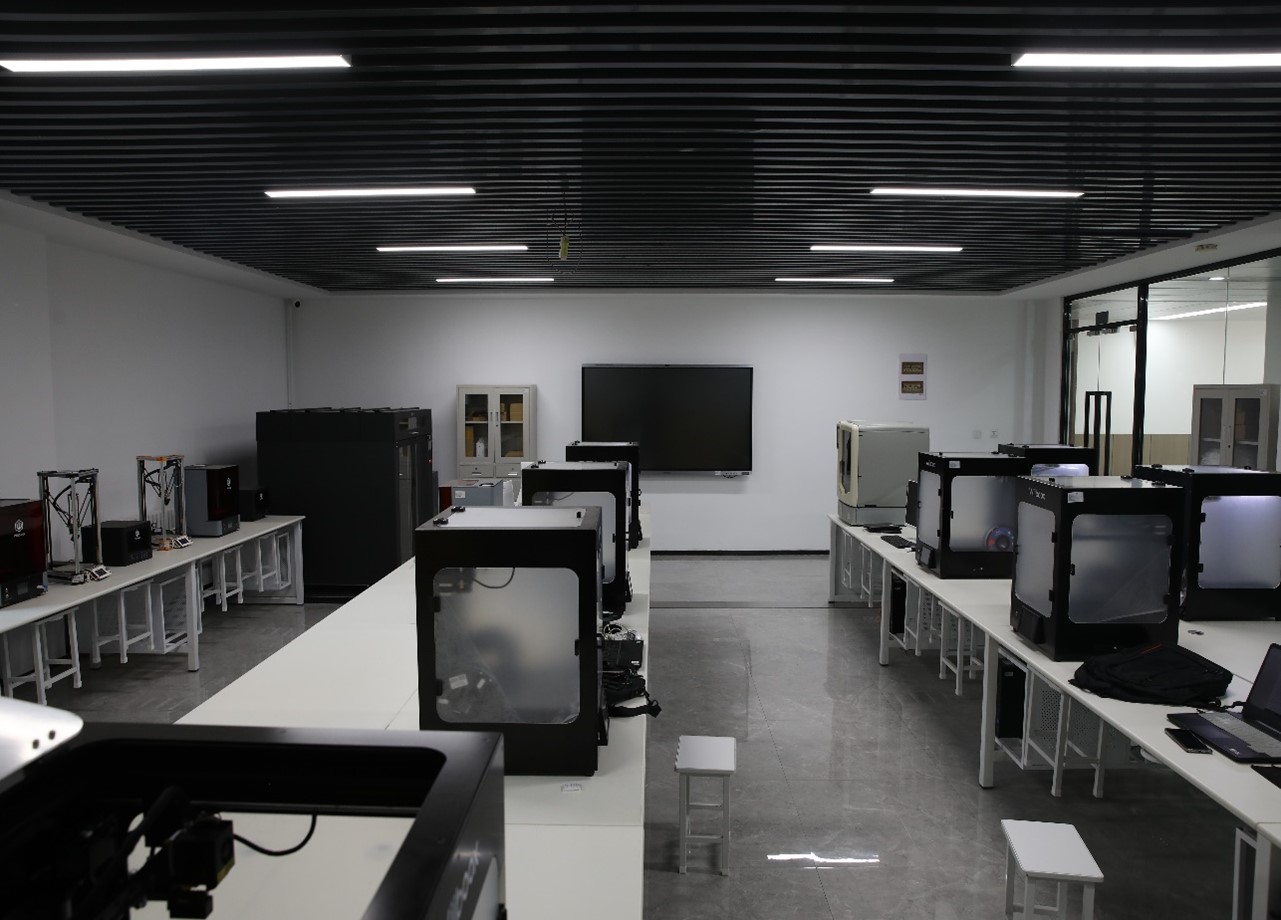 3D打印是集计算机科学、材料科学、光学和机械学等多学科的综合性制造技术,适合于加工制造复杂型面的零件模型、样品等。本实验室占地面积约92平米,配有1台手持式蓝色激光三维扫描仪、1台高精度物体3D扫描仪、1台FDM超大尺寸3D打印机、5台FDM中型号单喷头3D打印机、5台FDM独立双喷头3D打印机、5台桌面级LCD光固化3D打印机等主要实验设备,用于本科生实验实训教学和创新设计大赛产品制作,设备总价值60余万元。快速成型对促进产品创新、缩短新产品开发周期有积极的推动作用。