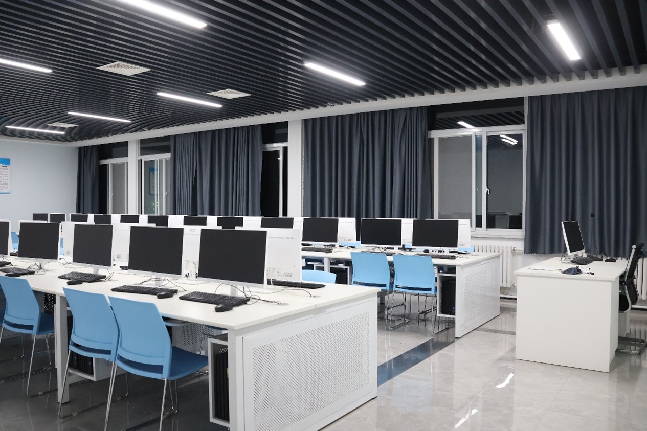 四间专业实验室每个房间占地面积约为95.4平米,均配有53台计算机,主要承担建筑工程、机电工程、汽车工程等类别的专业课程。目前已经安装了鲁班、广联达等相关实验教学软件。另外四间实验室也可以作为标准化考场开展相关的专业技能考试。