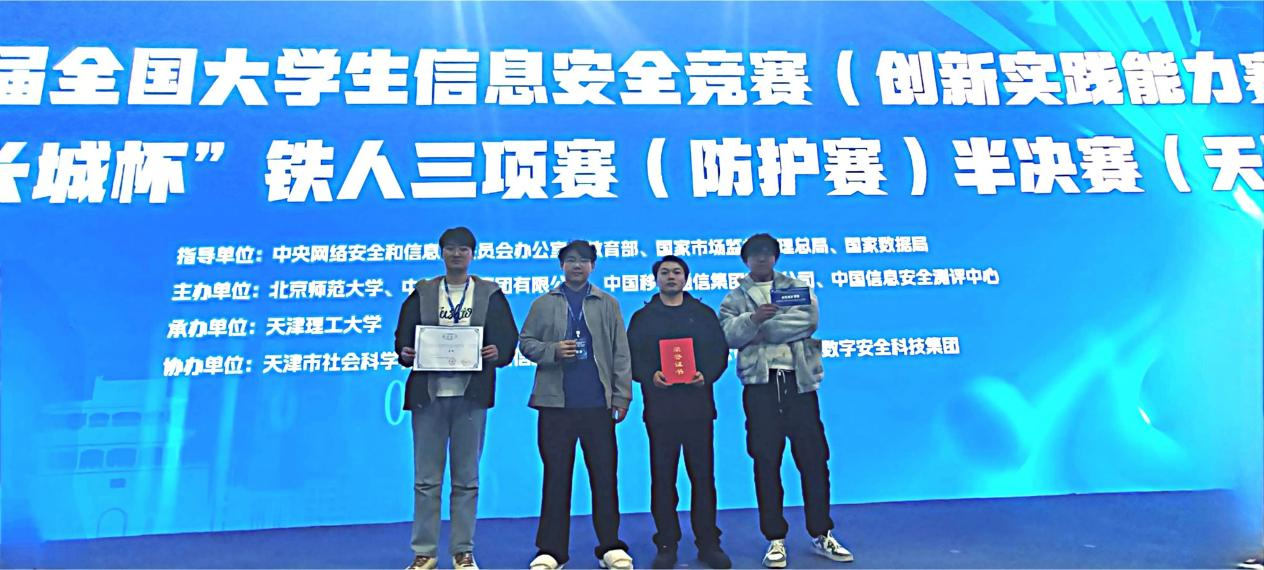 (2)第十八届全国大学生信息安全竞赛(创新实践能力赛)暨第二届“长城杯”铁人三项赛(防护赛)半决赛中,团队拿下三等奖,实现“国家级、市级赛事全覆盖获奖”