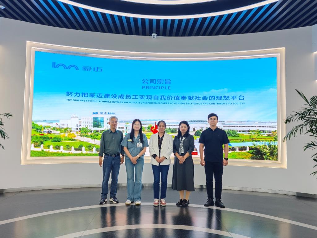 在豪迈集团相关负责人的陪同下,蒋丽丽副院长一行首先参观了集团发展历程展示区与核心厂房生产现场。通过实地考察,了解了豪迈集团的产业布局、核心生产工艺、技术研发方向及未来发展规划,直观感受到企业的现代化生产模式与人才需求导向,为后续校企合作落地筑牢实践基础。