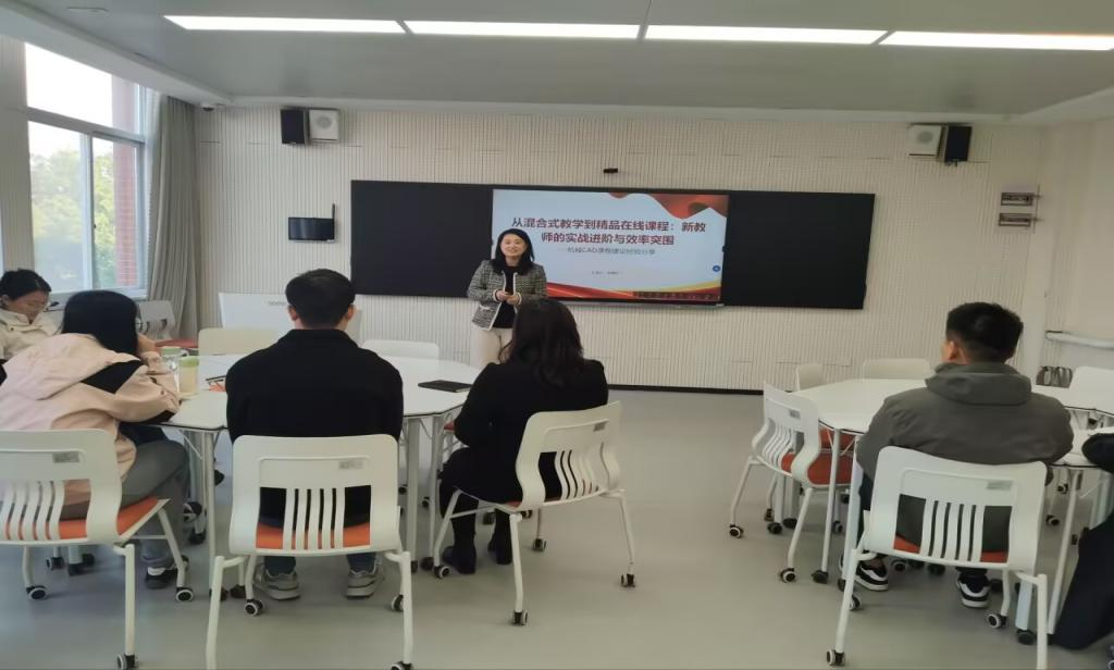 朱艳华教授结合所教课程《机械CAD》建设经验向青年教师分享如何做课程设计架构解析、资源开发技巧、运营维护实战经验交流等内容。培训内容摒弃空洞理论,全程以“实战”为核心,环环相扣,层层递进从构建“课程建设三级跳”到模型:积累到质变再到升华,鼓励并赋能青年教师快速掌握现代化教学技能,实现从“站上讲台”到“引领课堂”的跨越。