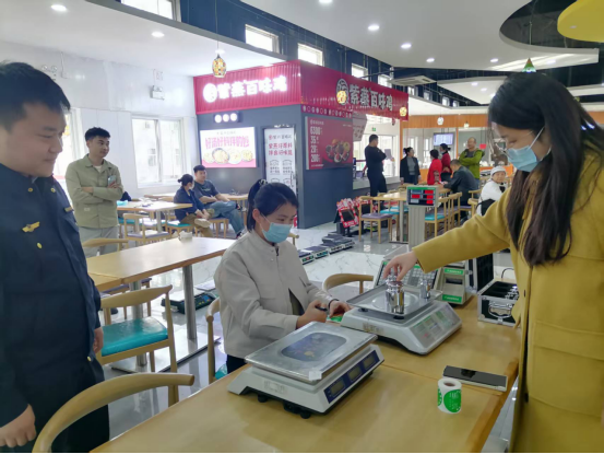 为切实维护校园消费市场的公平秩序,保障广大学生的合法权益,将“以生为本”的服务理念落到实处,2025年11月13日,山东英才学院后勤处主动作为,特别邀请高新区市场监管所的专业检测人员走进校园,对校内各餐厅档口及商业街商户使用的经营秤进行了全面、严格的专项检测。本次活动得到了校内商户的积极响应,各位商户踊跃参加,共同守护校园交易的“公平秤”。
