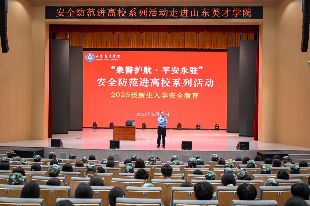 9月23日下午,由济南市公安局、国家安全局、司法局联合主办的“泉警护航・平安永驻”安全防范进高校系列活动在山东英才学院南校区英才音乐厅成功举行。活动通过线上线下相结合的方式,吸引近1万名大一新生共同参与,为广大师生带来一场内容丰富、形式生动的安全教育盛宴。