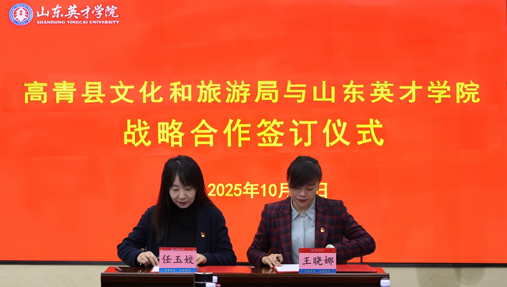 2025年10月23日上午,山东英才学院与高青县文化和旅游局战略合作签订仪式暨支部共建活动在学校南校区成功举行。双方将围绕文旅资源开发、人才培养、文化传承等领域展开深度合作,共同服务黄河重大国家战略,助力区域经济社会高质量发展。