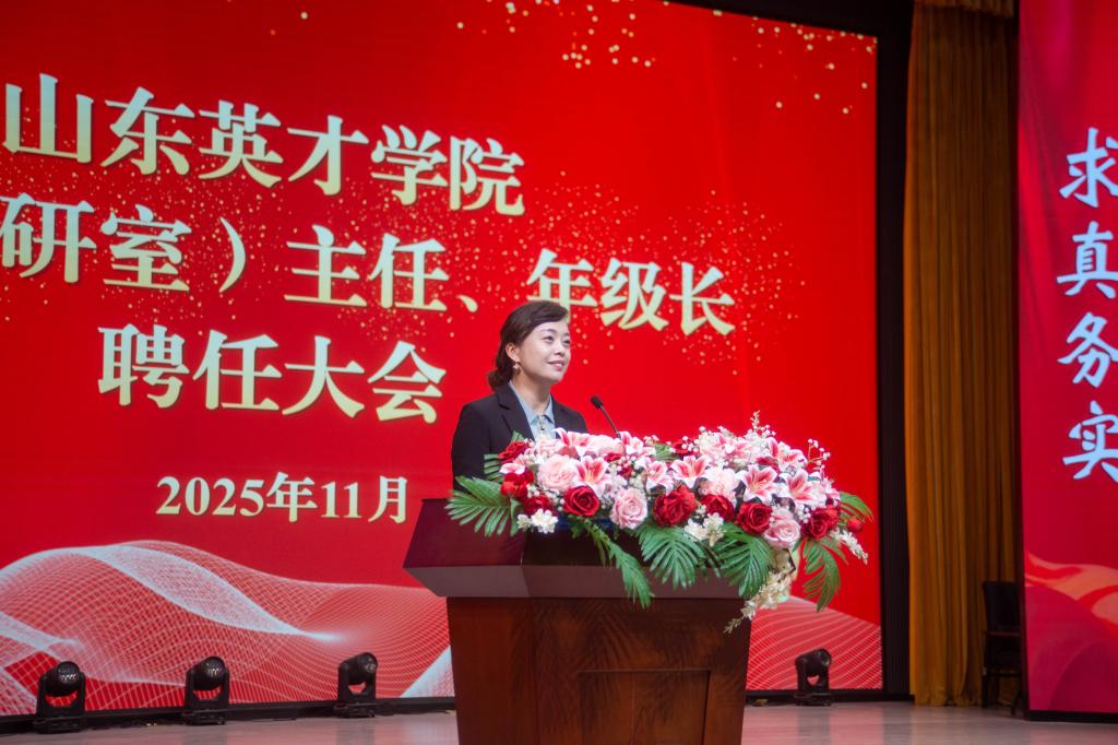 执行校长、党委副书记王晓娜作总结讲话。她首先向新任系(教研室)主任、年级长表示热烈祝贺,并向原任干部致以崇高敬意与衷心感谢。王校长指出,系(教研室)主任与年级长作为学校发展的“核心骨干层”,肩负着连接顶层设计与基层执行的关键使命。她围绕“责任与使命”主题,从五个方面提出殷切期望:一要胸怀大局、精准定位,做到“接天线”与“接地气”相结合,架起上下贯通的沟通桥梁;二要破壁融合、汇聚合力,推动教学与团学深度融合,整合校内外资源,构建“三全育人”工作格局;三要贯通链条、赋能成长,实现从招生到就业、从教学到科研、从成长到成才的全流程服务;四要拓宽视野、勇于创新,跳出“舒适区”,勇闯“新赛道”,以开拓思维推动院系特色发展;五要强化担当、善作善成,以守土有责的自觉、求真务实的作风和实绩为要的导向,扛起高质量发展重任。