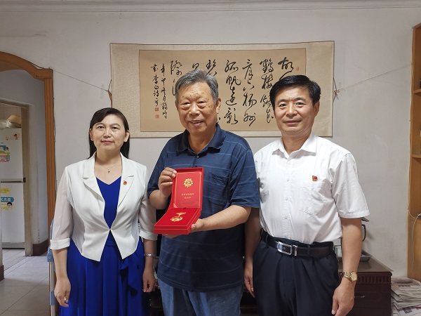 今年是中国共产党百年华诞,党中央决定,首次颁发“光荣在党50年”纪念章。为传递党的温暖,继承和弘扬老一辈共产党员的优良作风,6月11日上午,我校党委副书记、副校长张宗胜,党委副书记、副校长孙玉香,党办主任余文千,代表学校向陈龙飞、李树德、张俊峰3名学校离休老干部、老党员送达、颁发“光荣在党50年”纪念章,为他们在学校建设发展中作出的突出贡献,表示衷心感谢和崇高敬意。