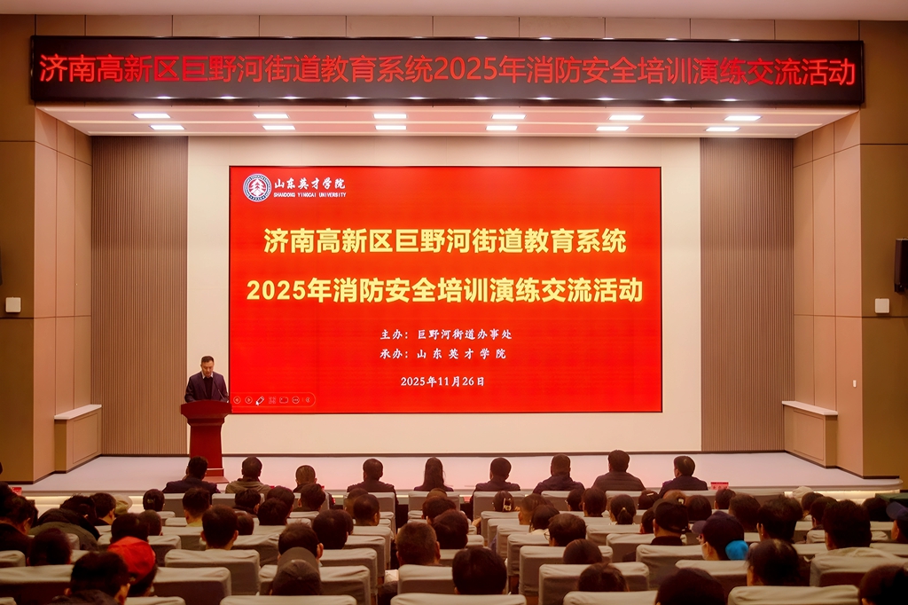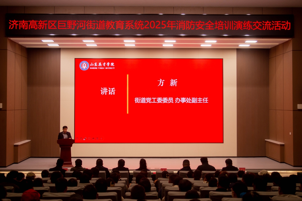 11月26日,济南高新区巨野河街道教育系统2025年消防安全培训演练交流活动在山东英才学院举行。活动由巨野河街道办事处主办,山东英才学院承办。巨野河街道党工委委员、办事处副主任方新,山东英才学院纪委书记、副校长李晓玲,驻地各学校安全工作负责人及山东英才学院消防安全重点岗位教职工参加。