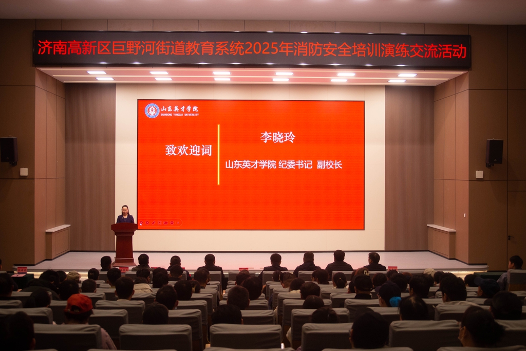 李晓玲代表山东英才学院致欢迎词。她介绍了学校建校27年来在消防安全方面的工作成效。学校通过推进平安校园“六化”建设,有效保障了校园安全稳定。她表示此次活动是对学校安全工作的认可,学校将以此为契机提升安全管理水平,加强校际交流,推动安全工作迈上新台阶。