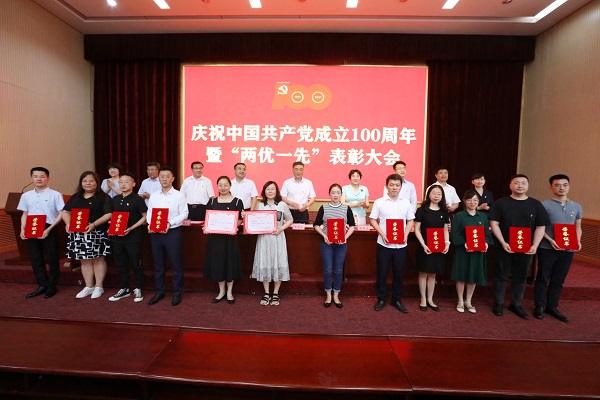 6月29日中午,我校在南校区学术报告厅隆重举行庆祝中国共产党成立100周年暨“两优一先”表彰大会。学校党委书记王崇杰,常务副校长陈斌,副校长葛聪、副校长梁庆文,党委副书记、副校长张宗胜,纪委书记、副校长崔奎勇,党委副书记、副校长孙玉香,副校长岳宁出席表彰大会。学校全体中层干部、商学院党委、各党总支、党支部班子成员,及受表彰的先进个人、全体党员参加活动。校长刘翠兰主持表彰大会。
