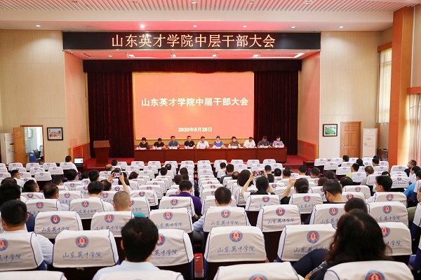 为聚力推进学校转型发展,5月28日,我校在南校区学术报告厅举行中层干部大会,部署2020年和今后一段时间的学校重点工作,学校董事长李花出席会议并讲话。学校党委书记王崇杰、执行校长刘翠兰、常务副校长陈斌,副校长梁庆文、张宗胜、崔奎勇、杨建军、孙玉香、岳宁出席会议。学校执行校长刘翠兰主持了会议。