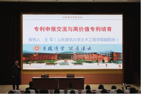 为营造良好的学术氛围,拓展学术领域,10月18日下午,工学院举办的“精匠讲堂系列讲座”在南校区学术报告厅顺利举行。山东建筑大学土木工程学院副院长王军博士应邀做“专利撰写交流与高价值专利培育”专题讲座,工学院土木建筑专业群全体教师及学生代表到场聆听。