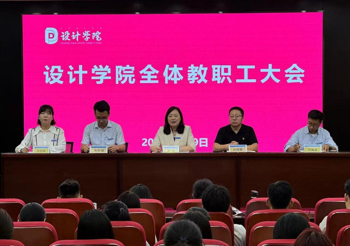 2025年9月9日上午,设计学院在学术报告厅召开2025年秋季新学期首次全体教职工大会。全院教职工齐聚一堂,以饱满热情凝聚共识,为新学期工作谋篇布局。本次会议由学院教学副院长尚宪福主持。