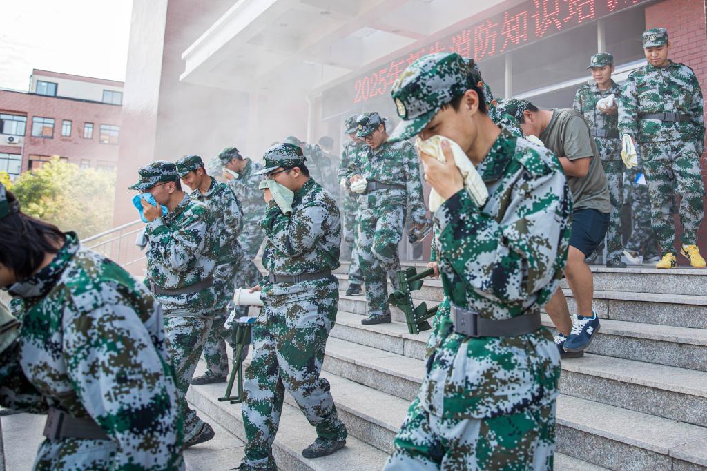 培训结束后,实战演练环节有序展开。在消防疏散逃生演练中,模拟“大学生活动中心突发火情”场景,现场工作人员通过鸣响警报、引导疏散路线,组织800余名新生用湿毛巾捂住口鼻,弯腰低姿快速通过“烟雾区”,在指定时间内安全撤离至室外广场集结点,整个过程秩序井然,充分检验了新生的应急疏散反应能力。