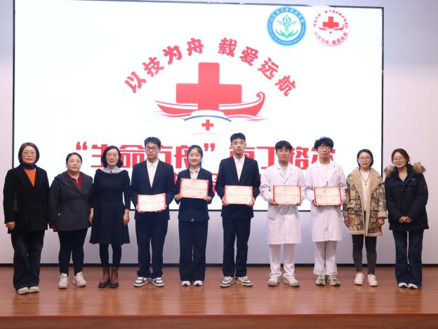 校团委韩国庆老师率先上台,郑重宣读“生命方舟”南丁格尔救护服务队成立批复,标志着服务队正式步入规范化发展新阶段,为校园及社会救护志愿服务注入新活力。随后,生命与健康科技志愿服务团队创始导师王辉以“以爱赋能,以技传薪”为核心,生动讲述了团队从筹备到组建的点滴过往,展现了全体成员对救护事业的热忱与坚守。服务队队长赵海威全面介绍了社团未来发展与计划,指导老师夏淑娟也对服务队成员提出了殷切期望,她勉励大家牢记“以技为舟,载爱远航”的理念,扎实提升救护技能,以专业素养践行志愿服务精神,用爱心与责任守护生命防线。