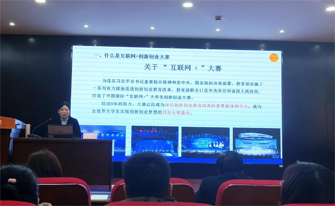 王坤丽主任从“什么是互联网+创新创业大赛”“为什么要参加互联网+大赛”“如何准备互联网+创新创业大赛”等三个方面作为切入点,向老师们讲解如何提升创新创业大赛的参赛质量。详细讲解了互联网+创新创业大赛的赛事安排、准备与积累,以及如何进行项目挖掘、赛道选题等,并进行了多个获奖项目的经验分享。