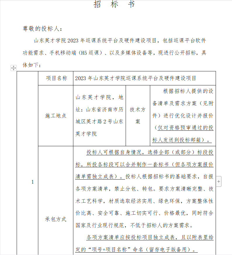 2023山东英才学院巡课系统平台及硬件建设项目招标公告.doc