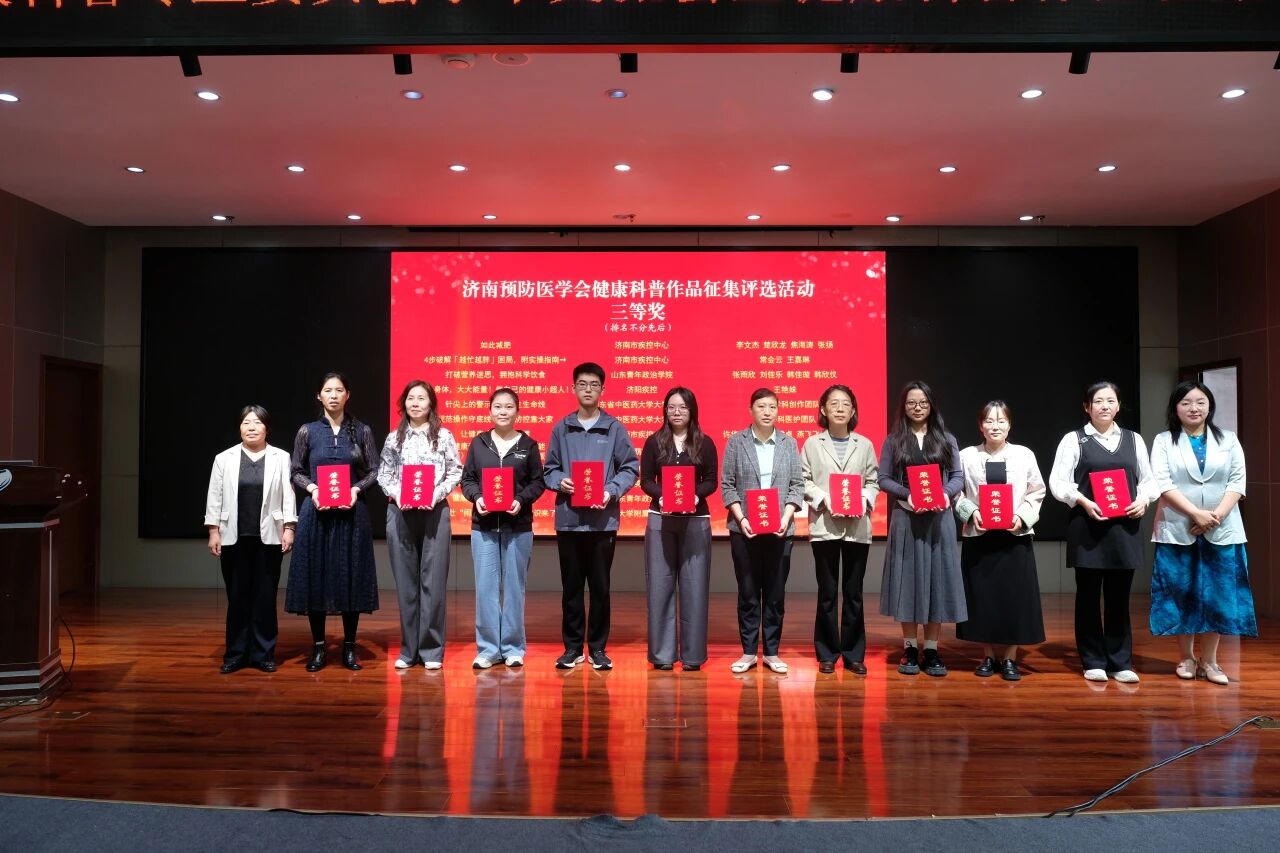 近日,由济南预防医学会主办、济南市疾病预防控制中心承办的“济南预防医学会健康科普专业委员会学术交流会暨2025年健康科普作品征集评选活动颁奖仪式”在济南公共卫生大厦成功举行。我校医学院“生命与健康”科技志愿服务团队申报的作品《糖尿病防控——从认知盲区到科学管理》在激烈角逐中脱颖而出,荣获三等奖。
