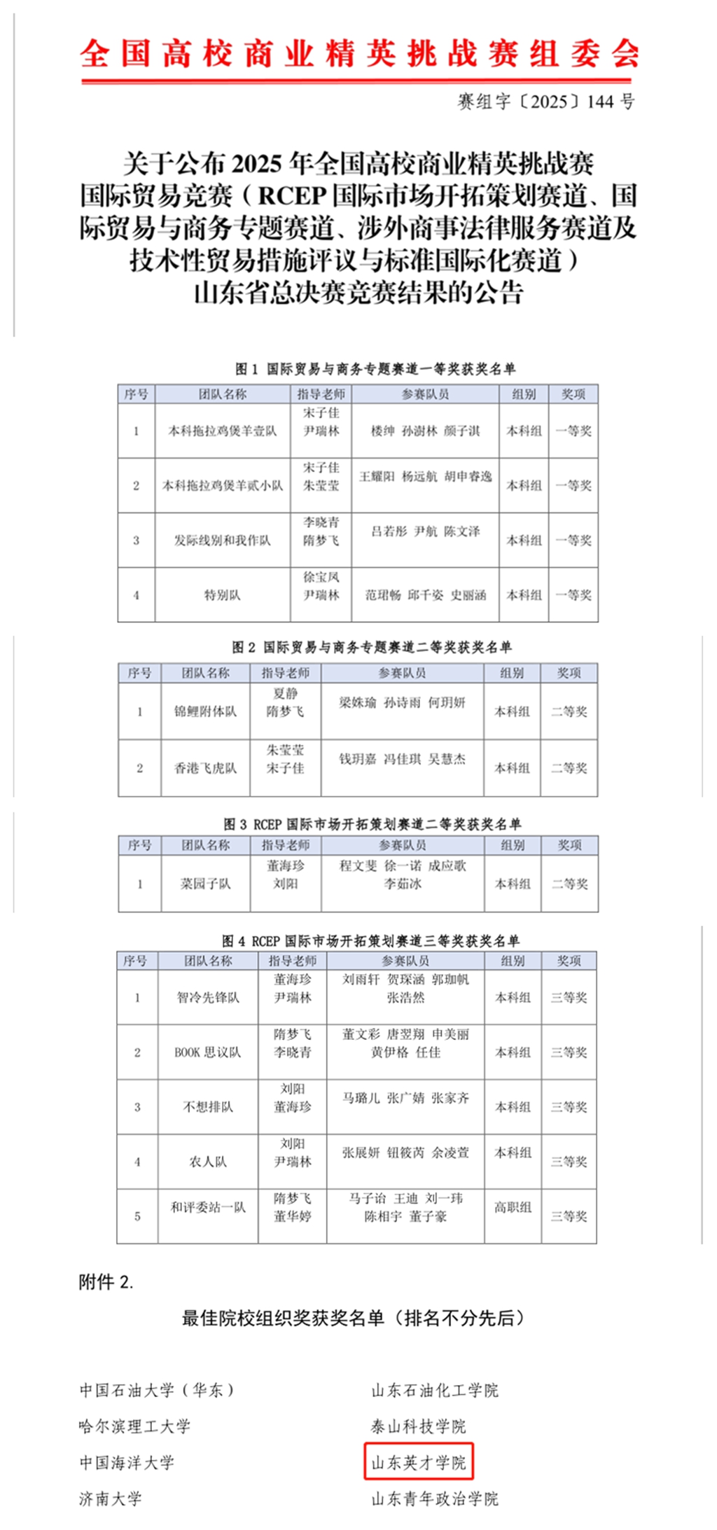 近日,2025年全国高校商业精英挑战赛国际贸易竞赛山东省总决赛在线上圆满落幕。我校商学院(国际学院)学子在比赛中表现优异,斩获省级一等奖四项、二等奖三项、三等奖五项,学校同时荣获“最佳院校组织奖”。