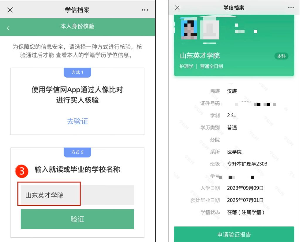 2.核对内容:学生个人关键信息,包含姓名、身份证号、学号、年级、专业、班级等信息。