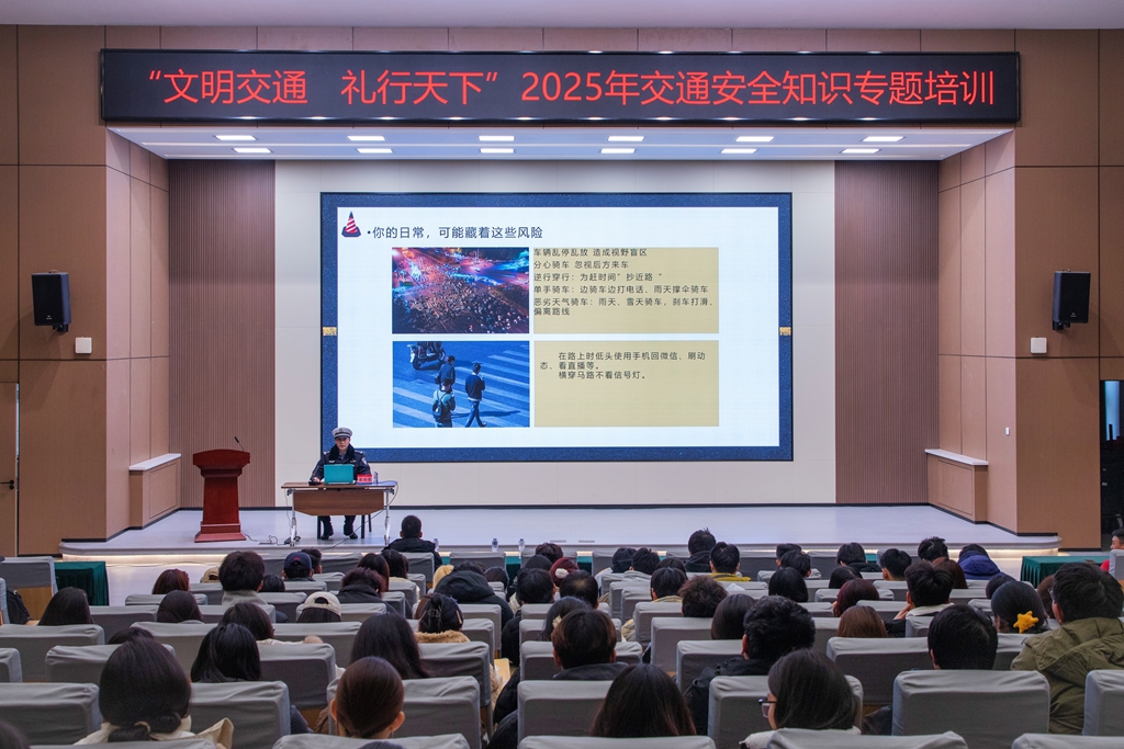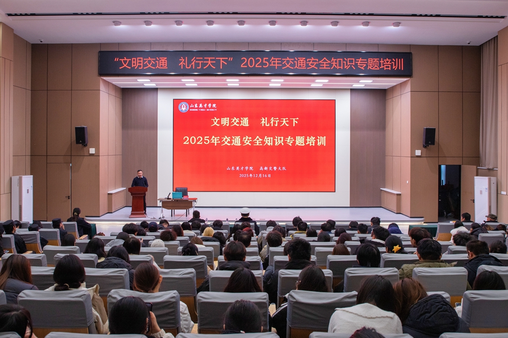 为切实加强校园交通安全教育,提升师生安全出行意识,12月16日,山东英才学院联合济南高新区交警大队孙村二中队,在学校学术报告厅成功举办“文明交通 礼行天下”交通安全知识专题培训活动。学校纪委书记、副校长李晓玲出席并致辞,高新区交警二中队翟羽佳队长担任主讲,安全管理处处长朱良增主持活动,全校300余名师生代表及通勤车司机共同参与。