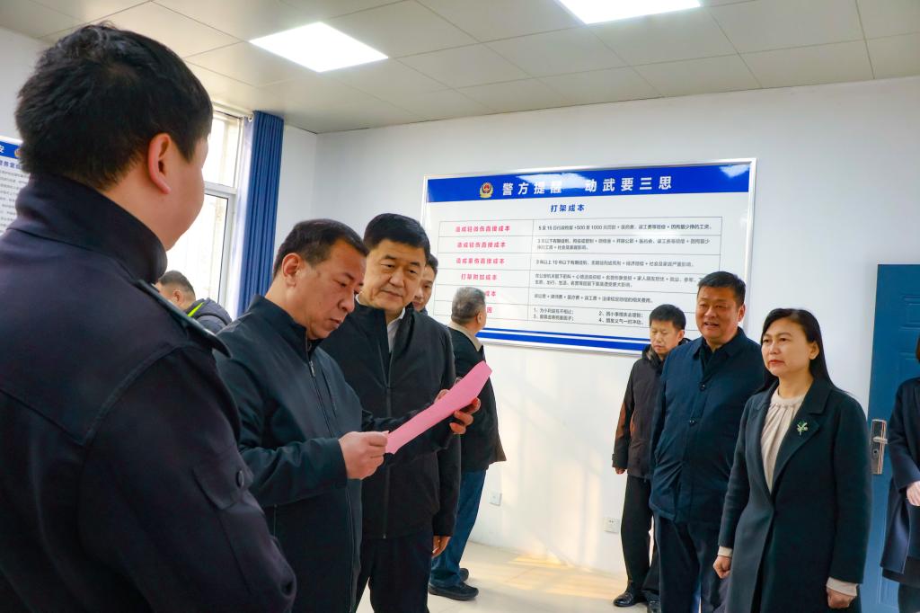 仪式结束后,与会人员共同参观了民族共同体文化长廊,通过系列展板深入了解民族团结政策与我校相关活动开展情况。随后,济南市公安局政保支队领导范勇一行走访调研了“石榴籽工作室”、校园监控指挥中心、警务室及心理健康教育中心,对我校在民族学生支持、校园安全管理和心理服务等方面的工作予以认可。