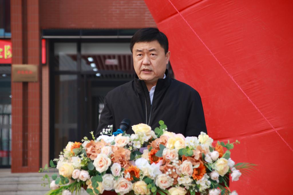 济南市公安局政保支队领导、一级高级警长范勇宣布山东英才学院民族团结文化宣传阵地建设活动正式开幕。