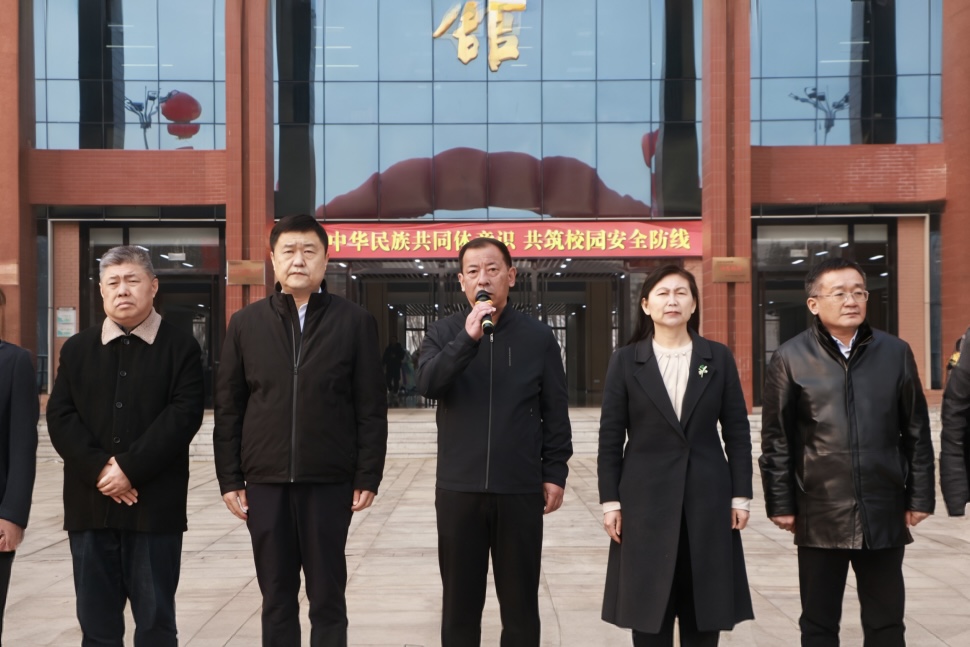 起步区公安分局党委副书记、政委侯长峰在讲话中肯定了我校在营造团结氛围、维护校园安全方面的努力,号召师生争做民族团结的维护者、校园安全的守护者。