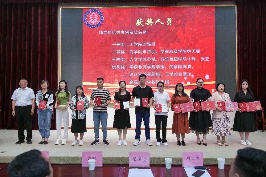 通识教育学院院长龙新良宣读2022年心理健康活动节获奖名单,与会领导为优秀教育工作者、辅导员优秀案例、优秀微课以及校园短视频的获奖人进行颁奖。
