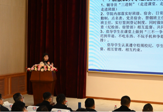 商学院辅导员李阳老师结合学院学生实际特点从实施过程、评价准则、预期目标、存在问题等四个方面对育人育才综合评价体系进行了详细的讲解。她表示,要坚持以学生成长成才为着力点,推进“供给侧”与“需求侧”协同联动,提高育人育才供给端的质量、效率和创新性,满足学生成长发展需求,不断提升育人质量。同时也号召全体辅导员要把育人育才综合评价体系彻底弄清楚、搞明白,切实成为管理班级学生做好思想政治教育及日常行为准则的有效抓手。