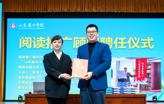 近日,山东英才学院“青春阅读季”活动正式拉开帷幕。活动期间举办了客座教授聘任仪式和主题分享会,为校园阅读文化注入新活力。山东文艺出版社总编辑杨智、第四编辑部主任王怀瑞,学校执行校长王晓娜、通识教育学院院长李强及图书馆相关领导出席活动。报告会由副校长崔奎勇主持。