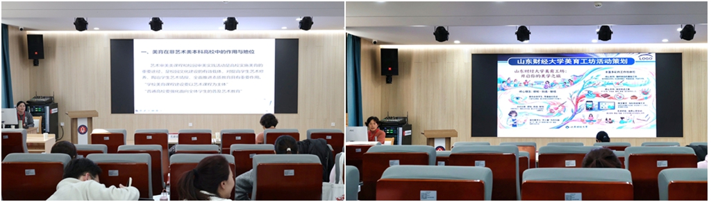 山东财经大学美育中心主任张春华以“美育工坊系列活动策划”为主题,阐述如何通过活动设计激发学生创意,增强美育的互动性与实践性。