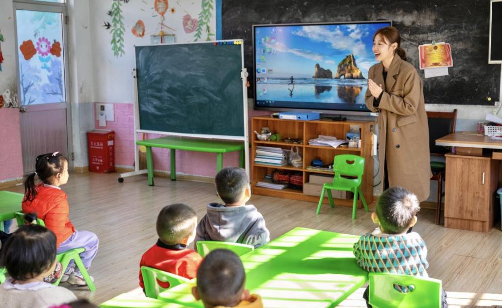 在“爱润童心”帮扶环节,学院向幼儿园捐赠了精心准备的玩教具。活动中,学生代表路畅充分运用所学专业知识,为乡村幼儿园孩子带来生动有趣的音乐示范课,将理论知识转化为实际教学行动,切实助力乡村学前教育发展,真正做到“学以致用”。
