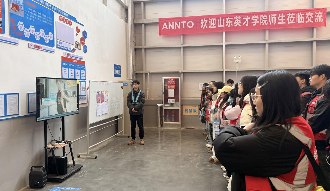 安得智联(济南分公司)人力资源部魏经理及相关部门负责人对师生一行予以热情接待,并围绕企业运营与管理实践开展系统性介绍。营销部王经理深入解读了安得智联的核心商业模式,重点阐述了其在生产物流、一盘货统仓统配以及“最后一公里”送装一体三大领域的解决方案,呈现了智慧物流在现代商业环境中的关键作用。安全部杨主管则面向学生开展仓储作业安全常识宣讲,结合实际案例强调安全生产规范,为学生未来步入职场筑牢安全意识和风险防范基础。