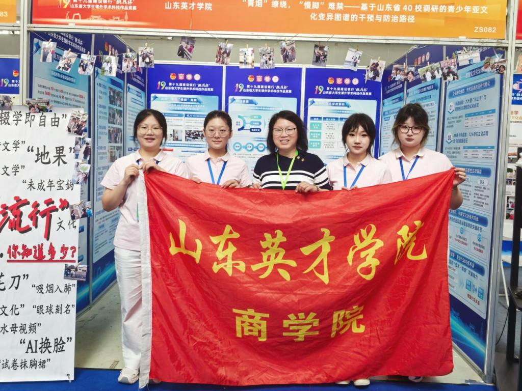 通过校赛选拔、省赛初评,商学院项目《“青烟”缭绕,“慢脚”难禁——基于山东省40校调研的青少年亚文化变异图谱的干预与防治路径》入围山东省总决赛。通过项目展示、项目问辩,斩获哲学社会科学类社会调查报告山东省一等奖。商学院连续获得第十八届、第十九届“挑战杯”山东省大学生课外学术科技作品竞赛一等奖!
