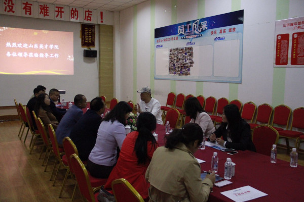 2019年3月25日,山东英才学院院长夏季亭、山东英才学院商学院党委书记张黎、山东英才学院商学院常务副院长付宏华、山东英才学院商学院副院长胡海清、赵琳、王春升与各教研室主任学科带头人应大帮扶企业的邀请,一同来到大帮扶企业做考察调研,大帮扶企业董事长宋霄飞,总经理许营、办公室主任陈慧陪同我院调研团队实地考察企业孵化基地、大数据整合中心,并在大帮扶企业的会议室进行了座谈。座谈会上,大帮扶企业董事长宋霄飞首先对各位校领导的到来表示热烈欢迎,并介绍了大帮扶企业的基本状况和目前的发展前景,大帮扶企业总经理许营就项目运营等情况做了简要发言。接着,夏院长介绍了山东英才学院的基本情况和校企合作的设想,同时邀请大帮扶企业到校考察,付宏华院长介绍了商学院目前的基本情况和开展校企合作的模式。