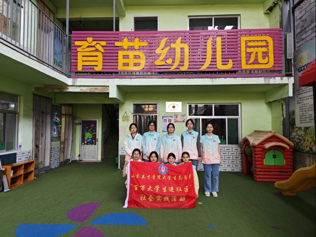 2025年4月22日下午2点,来自山东英才学院商学院(国际学院)本科电子商务2301的九名女大学生走进山东省济南市历城区育苗幼儿园。她们带着热情与活力,开启了一场充满爱的社区社会实践。