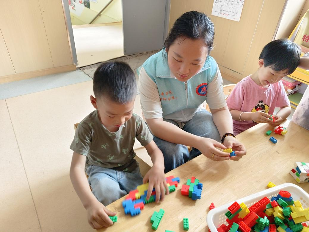实践成员走进幼儿园,陪孩子玩积木。不仅为孩子们带来了欢乐,还展现了当代青年的社会责任感。