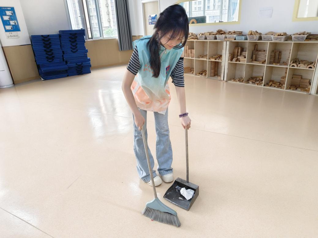 实践成员开展卫生清洁志愿服务。这一活动不仅为孩子们创造了整洁的学习环境,还展现了当代青年的奉献精神。