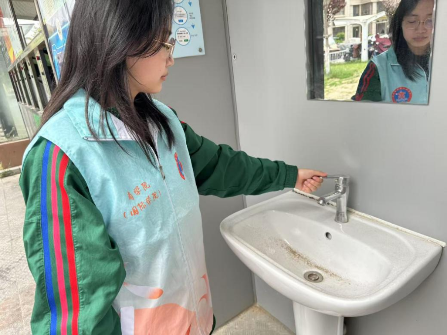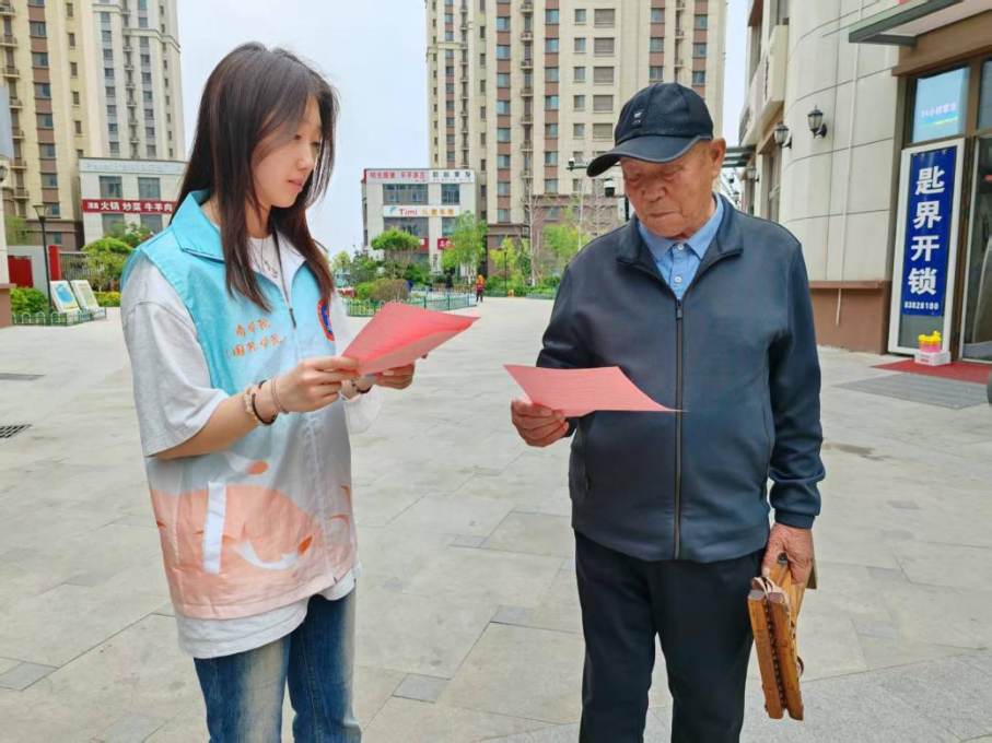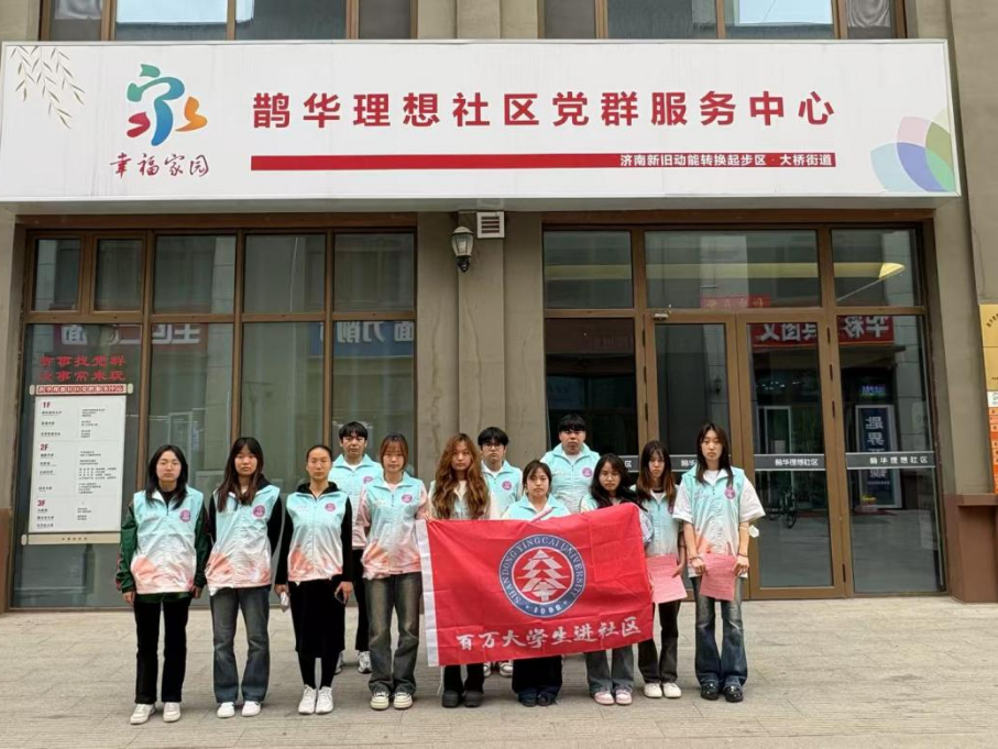 2025年4月15日在一个阳光明媚的早晨,山东省济南市天桥区鹊华理想社区的街道上,有着一群朝气蓬勃的身着志愿服年轻人忙碌在社区的各个地方,有人在捡起垃圾,有人在与老人聊天,还有人正在检查社区内设施的安全。他们是山东英才学院商学院的一群学生,正在开展为期一天的百万大学生进社区实践活动。