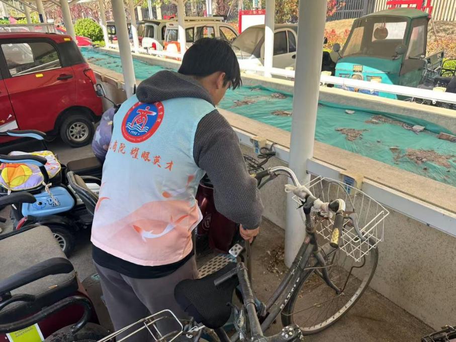 活动开始,实践成员们分成几个小组进入社区开始为期一天的实践活动,实践成员们依次排队从社区服务中心拿过社区人员手中的卫生夹子,扫帚簸箕以及垃圾袋对社区环境进行打扫。实践成员仔仔细细的检查社区的每一个角落和灌木丛以及停车点位进行打扫清洁,为社区的环境贡献自己的一份力量,同时实践成员发现社区停车点位有个别电瓶车有倾倒的现象,实践成员对侧翻的电瓶车进行扶正工作,确保停车点位的正常运行保护社区人员的财产。经过实践成员的打扫,社区卫生焕然一新。