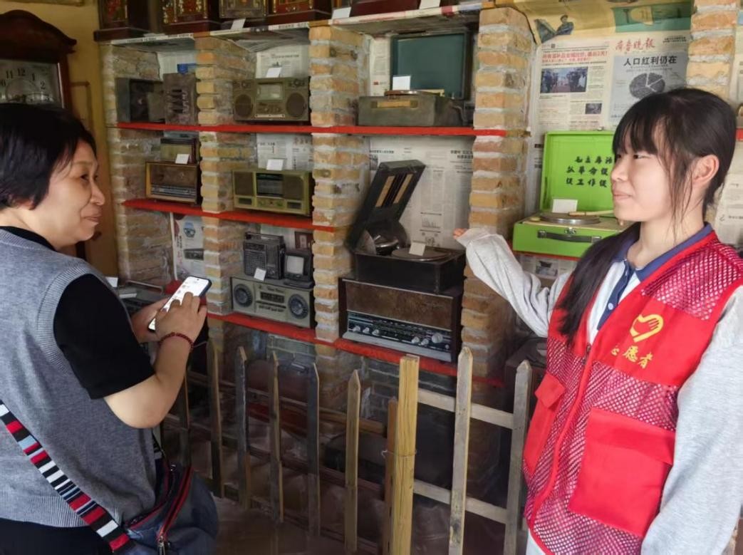 实践团成员在博物馆内为参观者提供路线指引,推荐合适的参观路线。