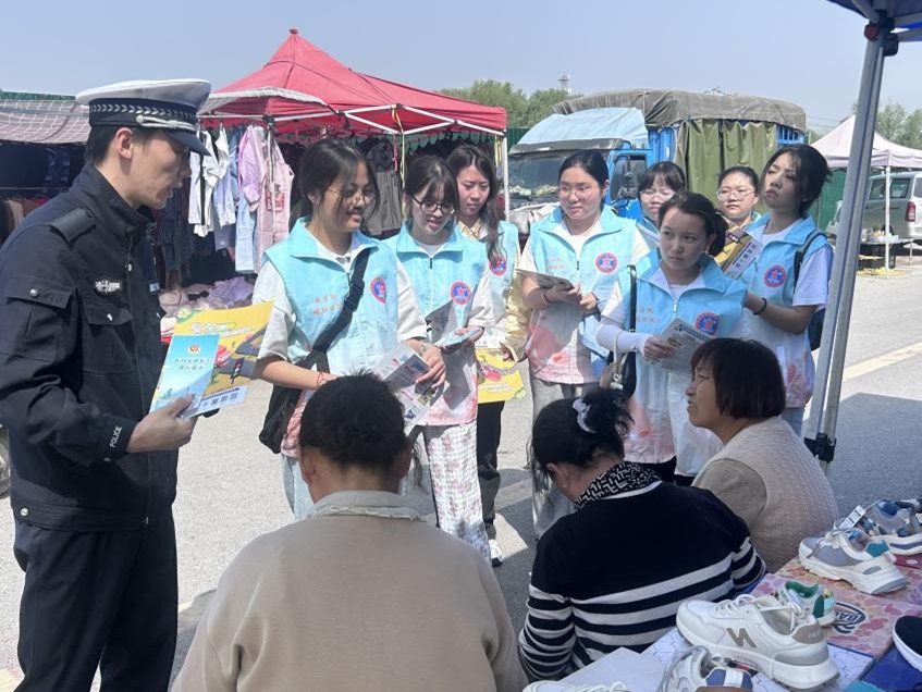 为全面掌握新时代文明城市建设的最新成果,在山东省济南市天桥区大桥街道104国道公安局新旧动能转换区分局,实践团队与民警联合开展的集市安全宣传活动。实践成员通过多种形式的宣传和互动,来提高公民的安全意识,推动文明城市建设迈上新台阶。