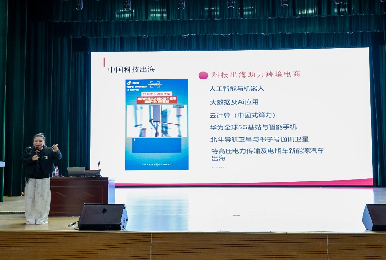 谈及跨境电商,盖总阐释跨境电商定义,介绍中国跨境电商市场规模极为庞大。她所在主创团队在跨境电商领域成果斐然,曾助力亚马逊平台眼镜类店铺一月登顶类目前三。团队自创新型培训机制,提前预判关税、平台走势,实现GMV增长与新流量布局。中国科技出海,如人工智能、5G、北斗导航等,为其发展提供有力支撑。