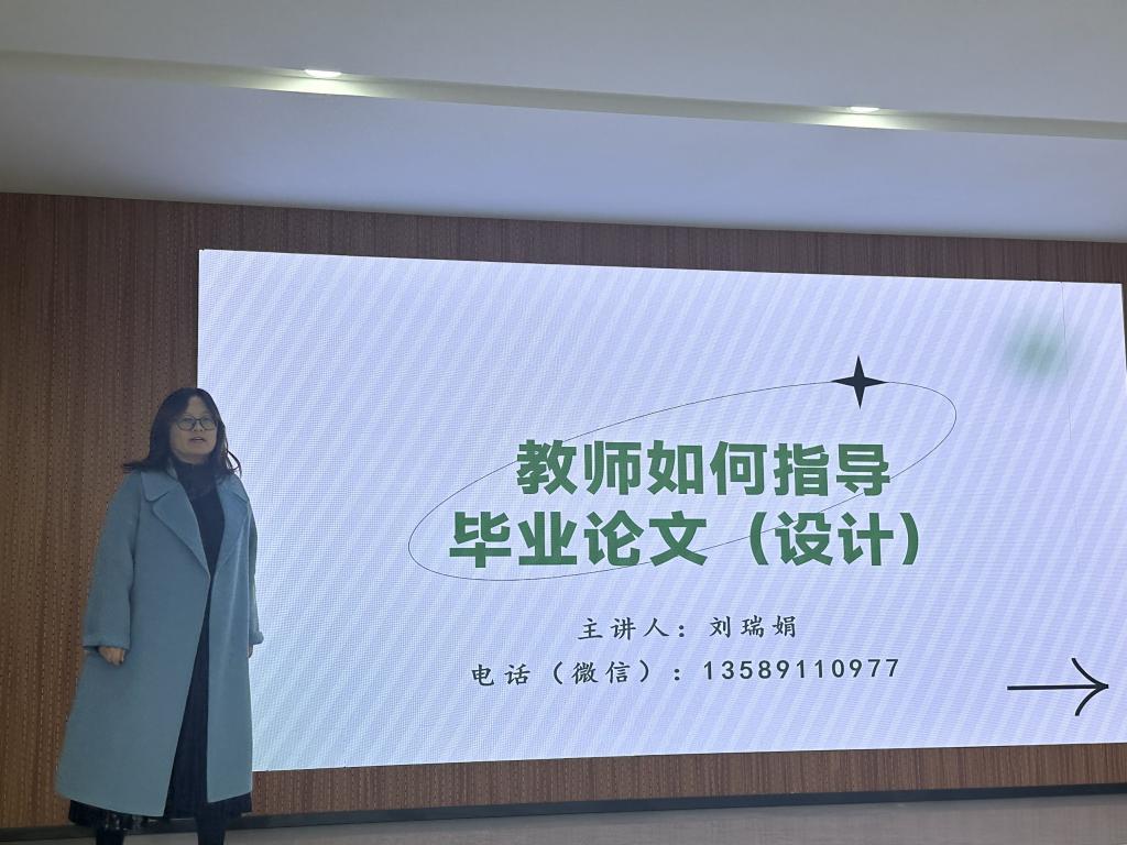 为破解教师在论文初始指导阶段的难点,助力学生夯实论文写作基础,2025年10月30日,商学院成功举办了主题为“如何指导论文的‘第一公里’:从选题到开题”专项培训。本次培训由商学院刘瑞娟教授主讲,参加人员覆盖商学院所有论文指导教师。刘教授通过理论讲解、案例分析、互动研讨等形式,为教师们送上了一场“干货满满”的指导盛宴。