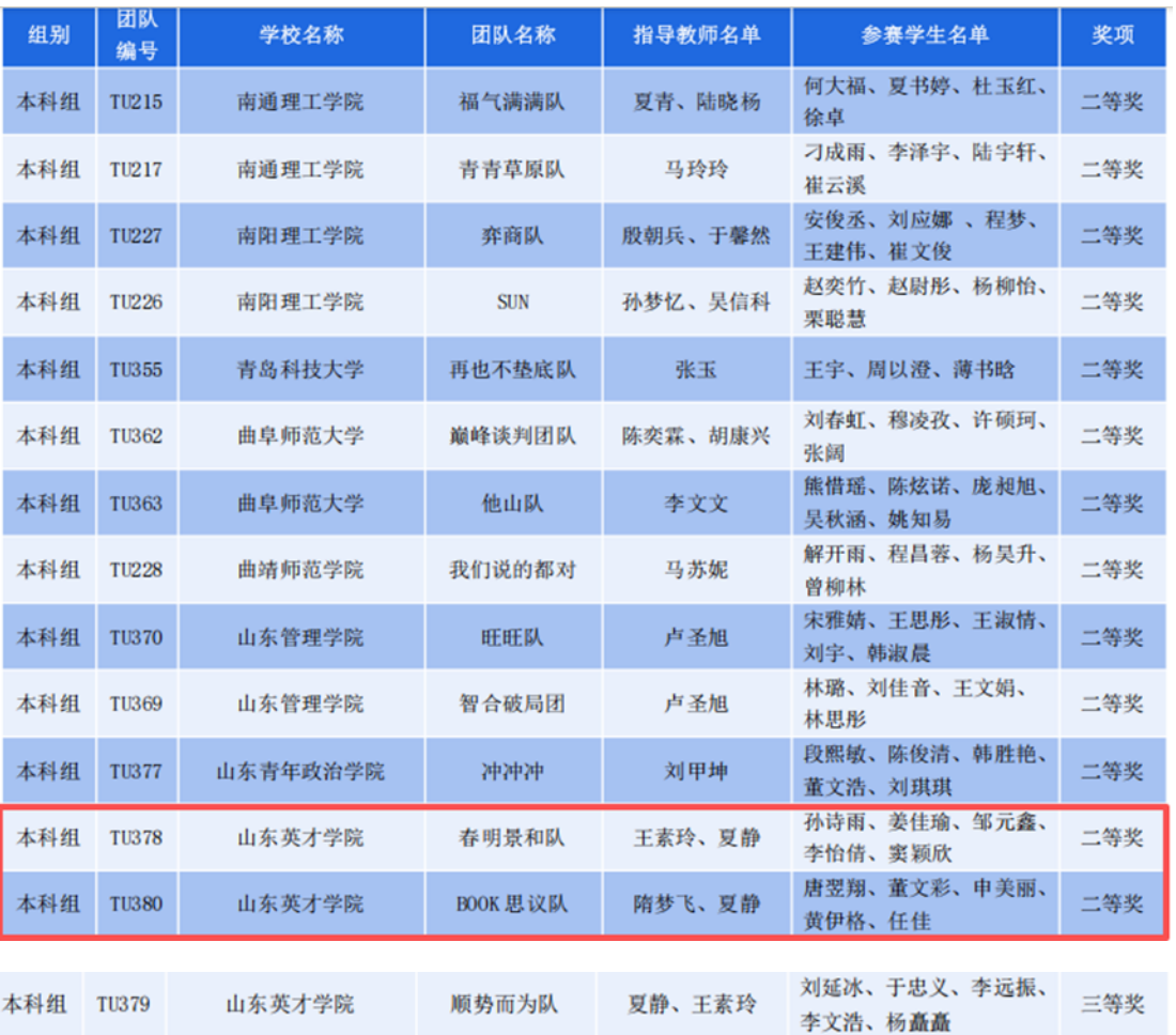 全国高校商业精英挑战赛商务谈判竞赛以真实商业场景为背景,模拟企业间商务谈判全过程,重点考察学生在市场分析、策略制定、沟通协调及临场应变等方面的能力。在激烈的竞争中,由王素玲、夏静老师联合指导的“春明景和队”和隋梦飞、夏静老师共同指导的“BOOK思议队”双双斩获全国二等奖;由夏静、王素玲老师指导的“顺势而为队”获得全国三等奖。这一优异成绩,是参赛师生团队共同努力的结晶。