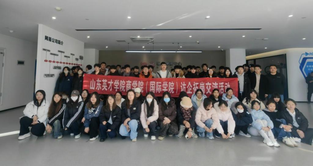 为深化产教融合,强化学生专业实践认知,2025年11月18日,商学院(国际学院)国际商务系徐宝凤、李晓青、谷禄、杨晓霞、朱程煜、赵海栋六位教师带领国际商务、电子商务、新闻采编与制作三个专业共222名学生,赴网易济南联合创新中心开展实践教学活动。