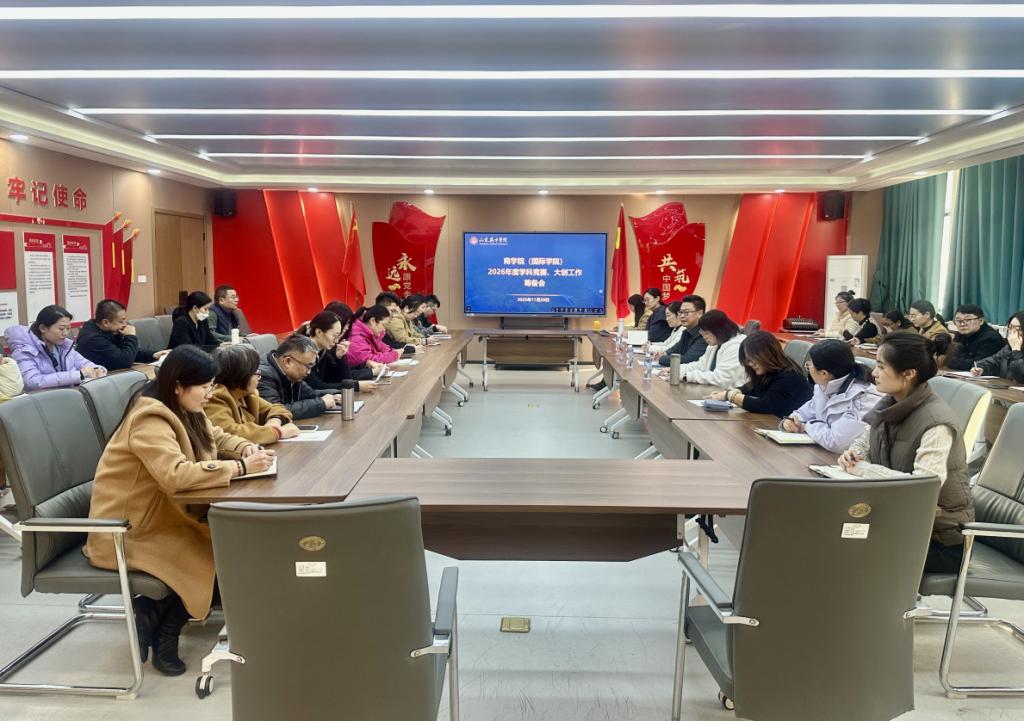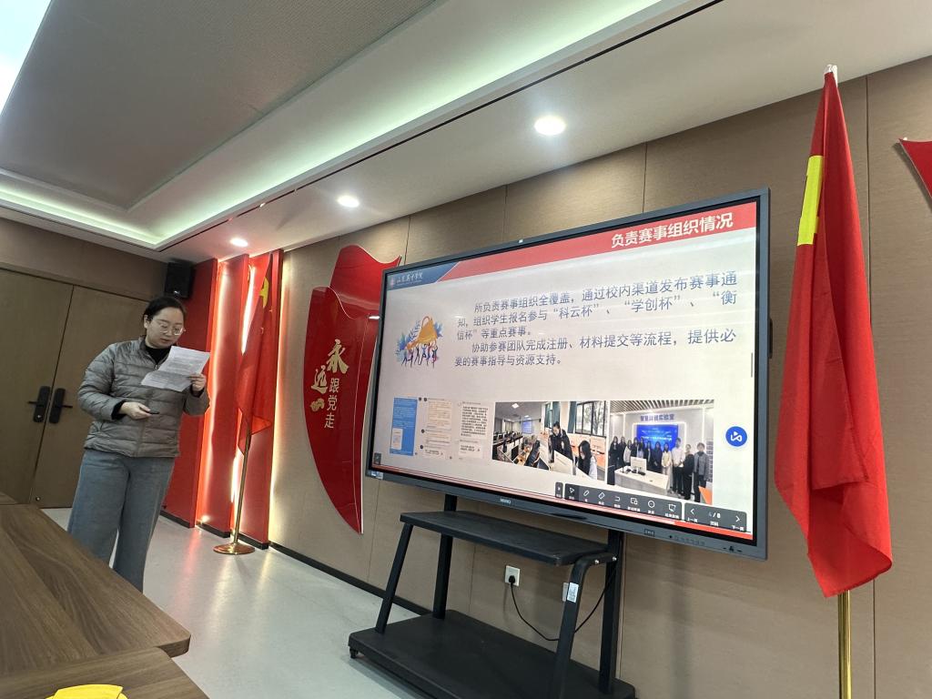 会议伊始,商学院(国际学院)竞赛工作负责人周玉燕老师全面汇报2025年度竞赛与大创工作整体成效,系统梳理了过去一年在各类赛事角逐、大创项目孵化中取得的突破性成果,展现了全院师生深耕创新创业领域的扎实成效。随后,各系主任结合本系工作实际,依次分享了特色工作方法、成熟实践经验、下一步推进思路及2026年度赛事预期目标,为全院创新创业工作协同发展提供了宝贵的实践参考。